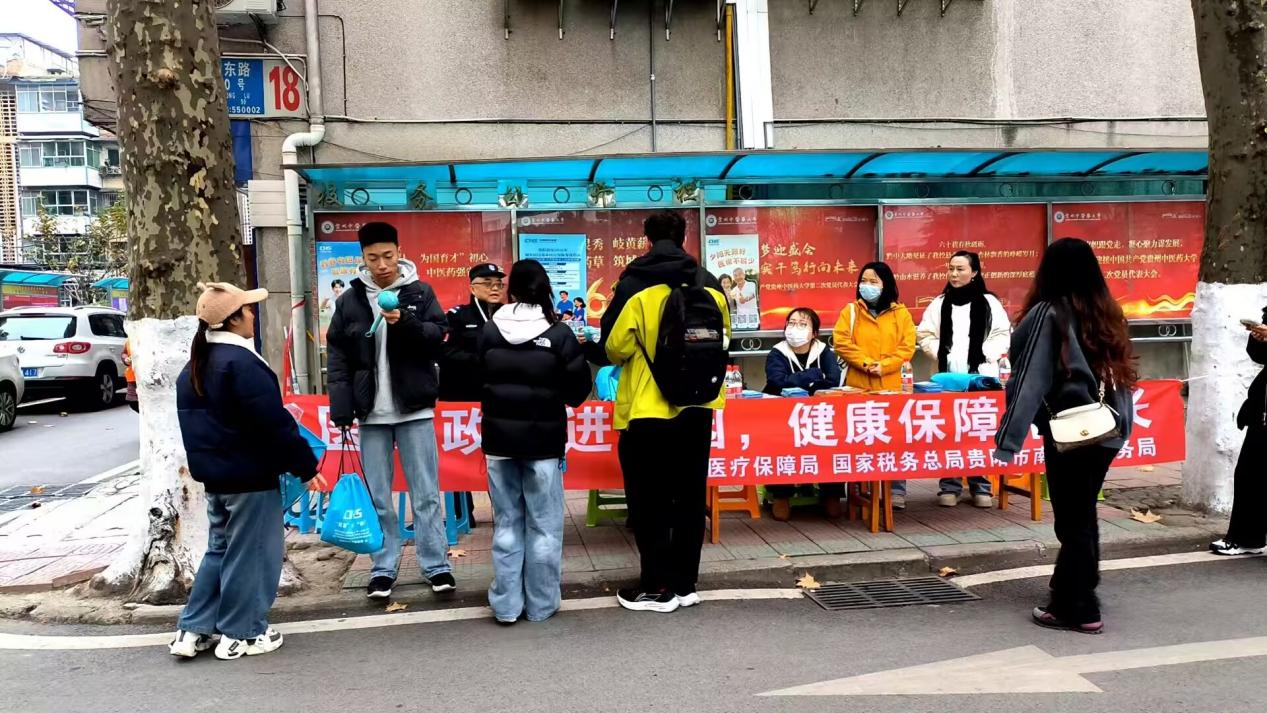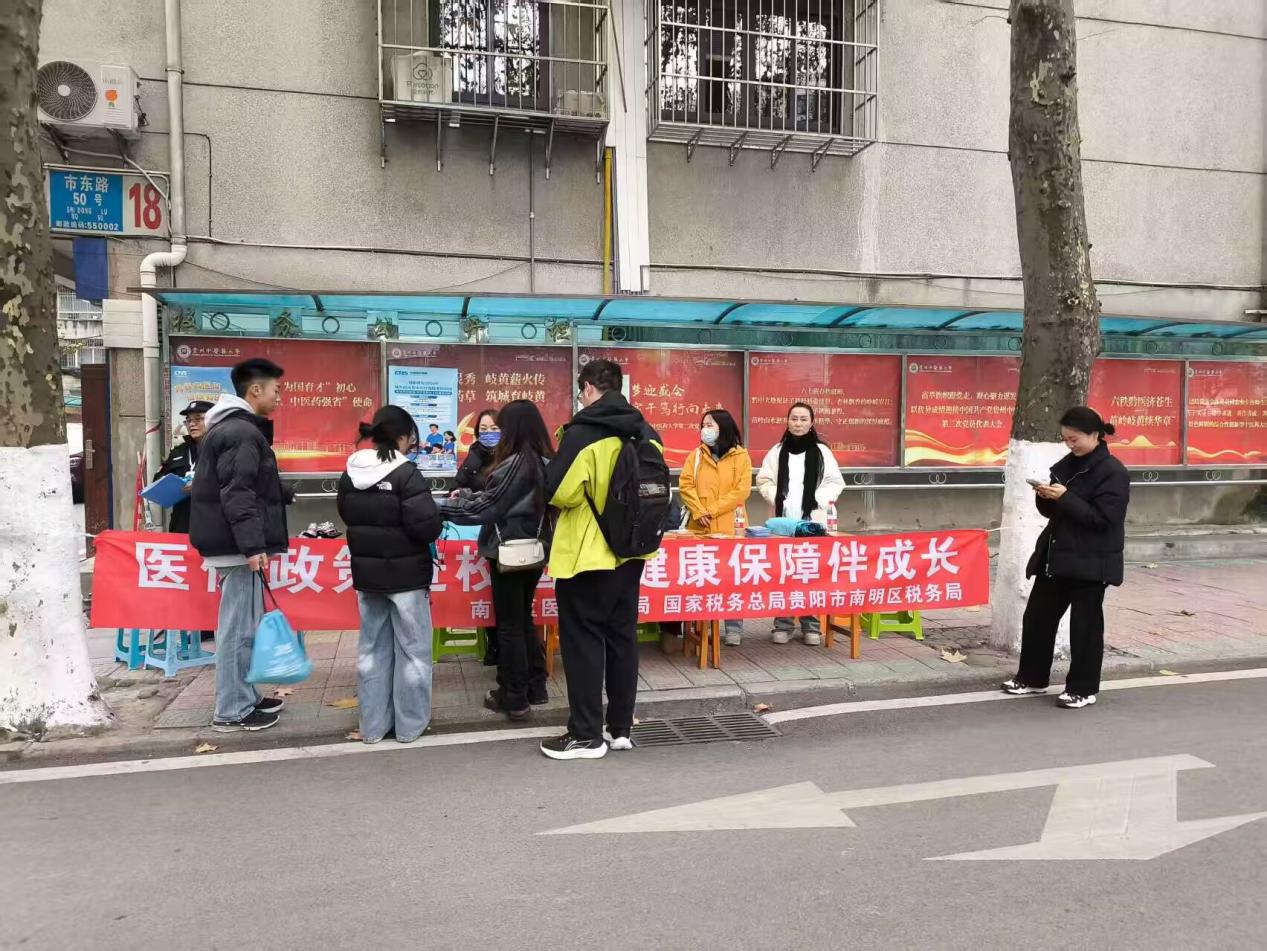 活动当天,在校园搭建了宣传服务台,南明区医保局、税务局的工作人员与校医疗保险协会的志愿者们一边热情地向过往师生发放宣传手册,一边耐心地面对面解答同学们关心的各类医保问题。