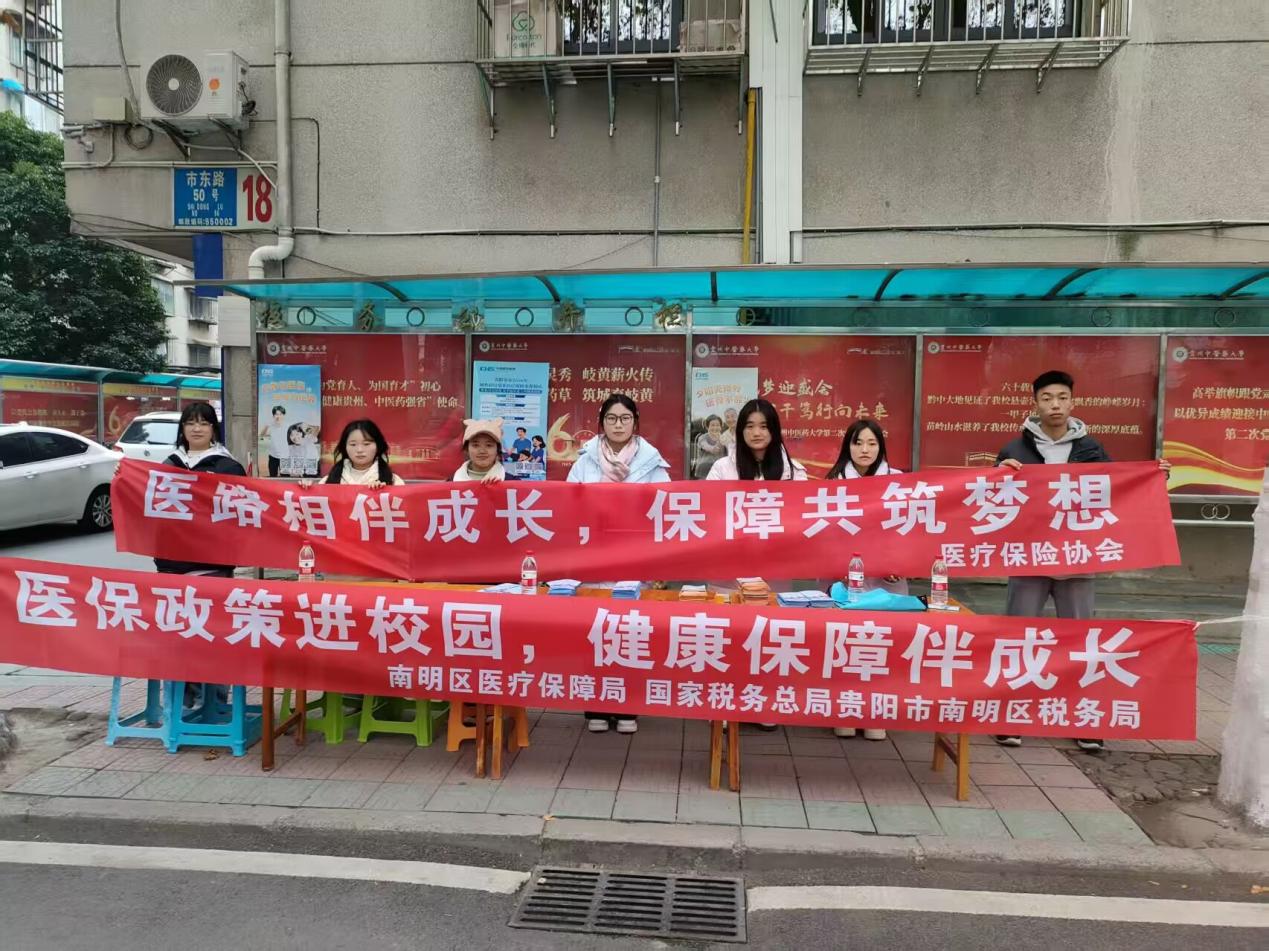 为进一步普及医保政策知识,切实提升青年学生的医保认知水平与主动参保意识,消除政策盲区,近日,校医疗保险协会携手南明区医疗保障局、国家税务总局贵阳市南明区税务局,在甲秀校区联合举办了主题为“医保政策进校园,健康保障伴成长”的宣传活动。此次活动吸引了近百名师生积极参与,现场气氛热烈。