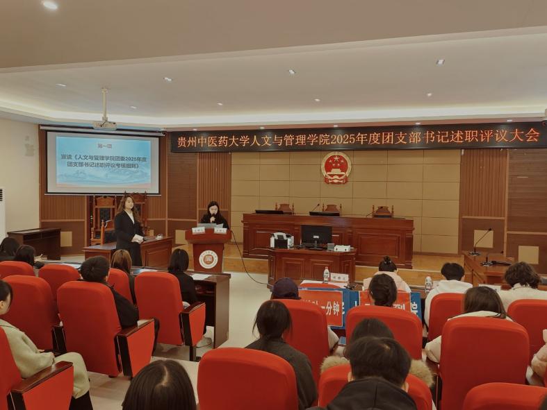 为深入推进基层团组织标准化、规范化建设,切实激发团支部工作活力,12月17日,团委在笃学楼五楼模拟法庭举办2025年度团支部书记述职评议。学院团委书记刘嘉洋,团委副书记杨宵、胡静文担任评委。各团支部书记、副书记及2023—2025级团干部参会。