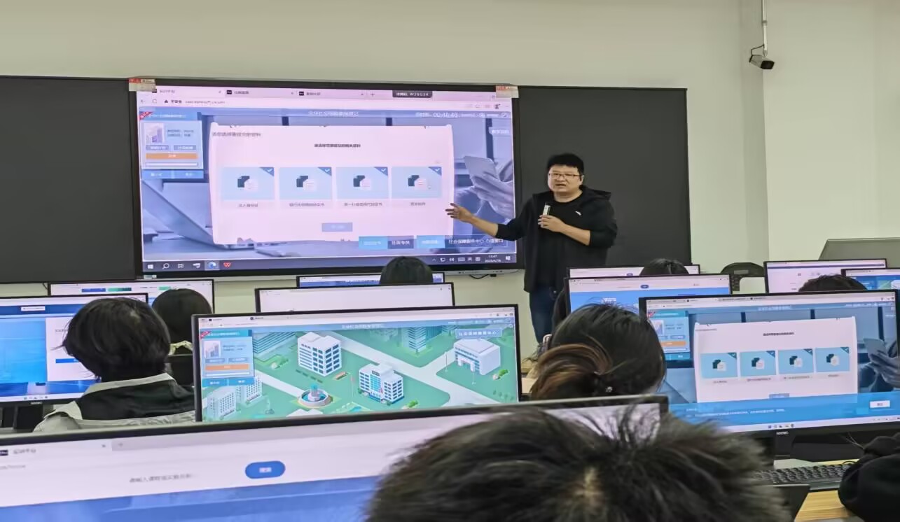 本次培训紧扣专业核心能力培养需求,重点围绕社会保障待遇给付和医疗保险综合虚拟仿真实验软件业务,吴老师结合最新社保政策与实务规范,详细讲解业务办理全环节,同步演示了软件的系统登录、模块切换、案例调取、数据填报、智能引导、实时校验等核心功能,让学生清晰掌握软件操作逻辑与业务办理要点。