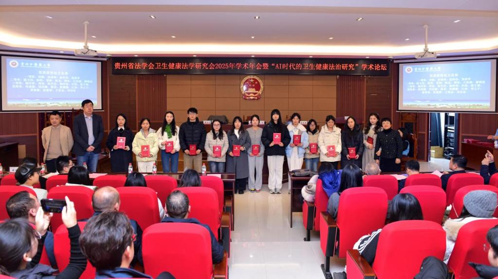 2025年12月15日,贵州省法学会卫生健康法学研究会2025年学术年会暨“AI时代的卫生健康法治研究”学术论坛在贵州中医药大学隆重举行。本次会议由贵州省法学会和贵州中医药大学联合主办,由贵州省法学会卫生健康法学研究会和贵州中医药大学人文与管理学院承办。来自国内知名专家学者、我校“黔中学者”特聘教授、省内立法机关、行政机关、审判机关、检察机关、律师事务所、医疗纠纷调解委员会、仲裁委员会、公证机构、司法鉴定机构等单位代表、我校法律硕士校外导师代表、省内有关高校师生代表、学会成员、获奖论文作者代表、我校法学学科专业师生代表等齐聚笃学楼模拟法庭,共赴交叉学科学术盛宴,共话卫生健康法治发展。会议和论坛聚焦AI时代法学与医学的交叉前沿理论与实践研究,围绕AI时代的卫生健康法治研究开展学会报告、主旨报告、青年论坛、导师聘任、论文颁奖等系列活动,旨在推动贵州省卫生健康法治事业、产业、行业的高质量发展。