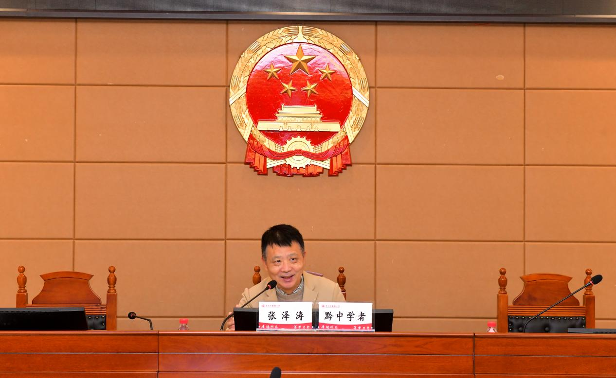 国家哲学社会科学法学学科会评专家、教育部法学教育指导委员会委员、国家高层次人才特殊支持计划领军人才、中宣部文化名家暨四个一批人才、人事部百千万人才工程人选、国家有突出贡献的中青年专家、教育部新世纪优秀人才、著名学者、广州大学二级教授、博士生导师、我校“黔中学者”张泽涛教授作《在法治化转型中重塑公共卫生治理能力》的学术报告,从风险治理、数字化转型、健康公平三个维度,结合贵州地域特色提出公共卫生治理改革建议,为区域卫生健康法治建设提供新理念、新战略、新路径。