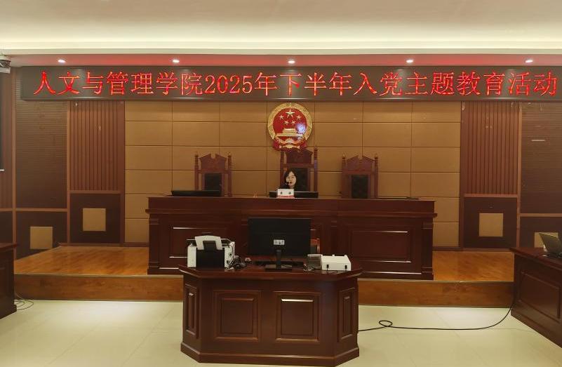 为深入学习贯彻党的二十大精神,全面落实新时代党的建设总要求,进一步规范党员发展程序,提升入党积极分子和发展对象的政治素养与理论水平,2025年9月26日,人文与管理学院在笃学楼五楼模拟法庭举办2025年下半年入党主题教育活动。活动由学院党委副书记梁婷主讲,学院各班团支部团员代表及院团委学生干部200余人参加。